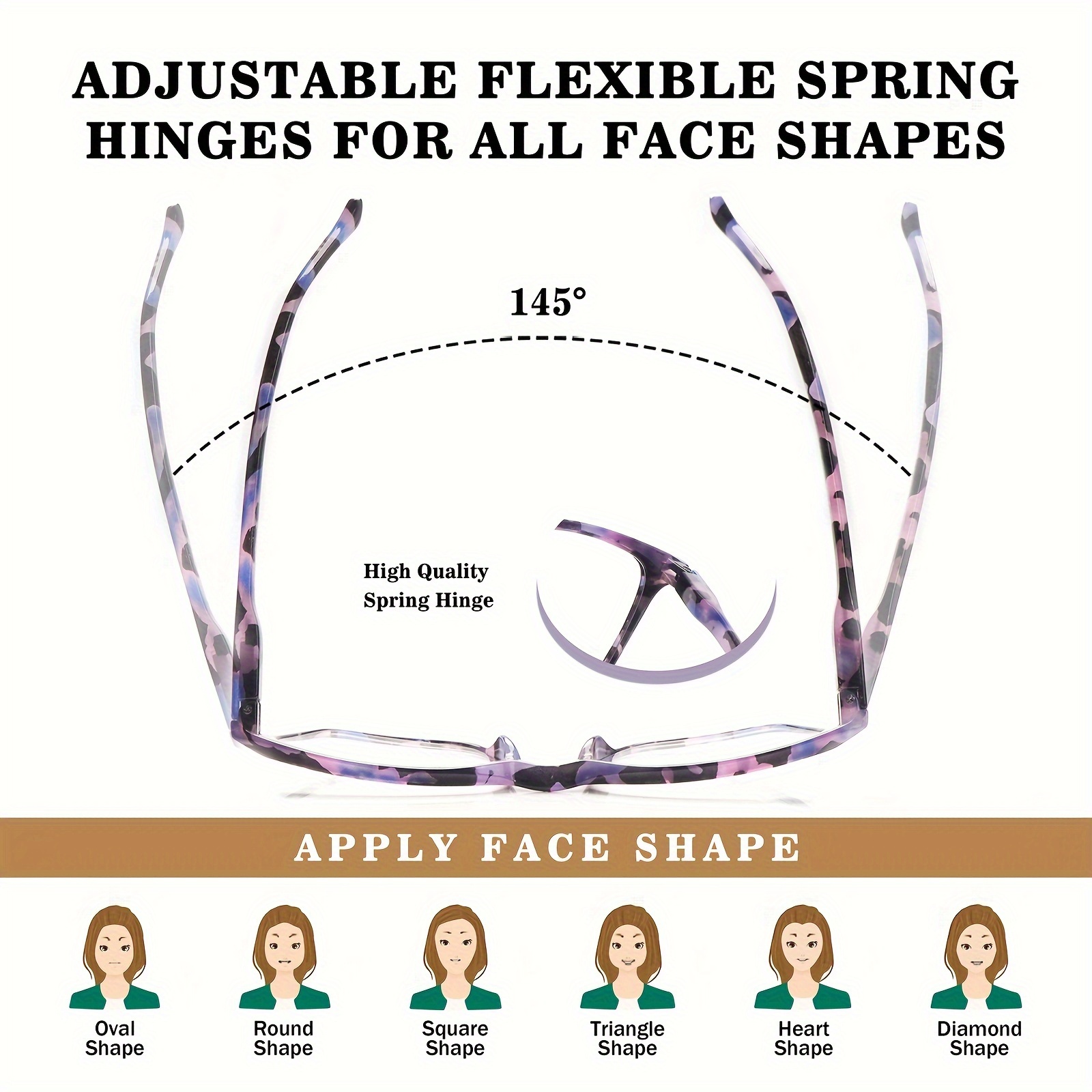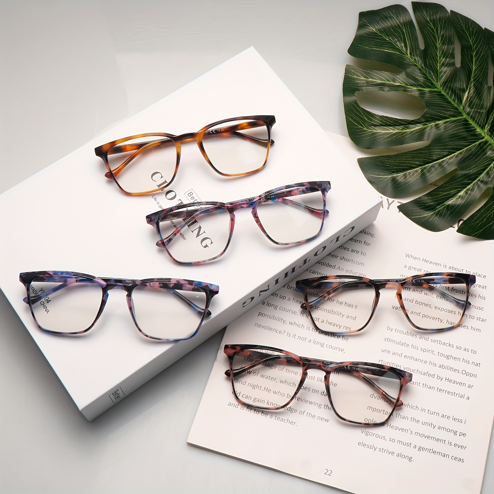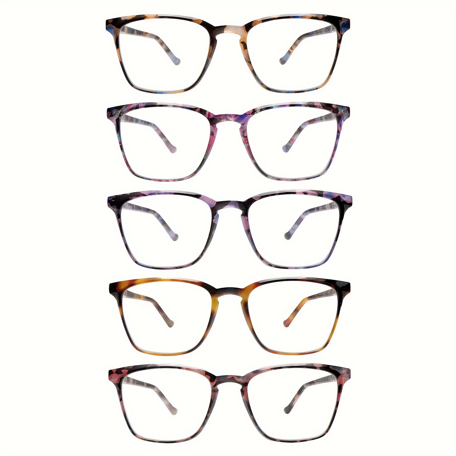 5pcs Stylish Blue Light Blocking Reading Glasses for Women – Lightweight Square Frames with Flexible Spring Hinges, Anti-Glare Computer Readers in Assorted Colors (Black Tortoiseshell, Purple Gradient, Amber Tortoiseshell, Gray-Brown Gradient, Clear Frame